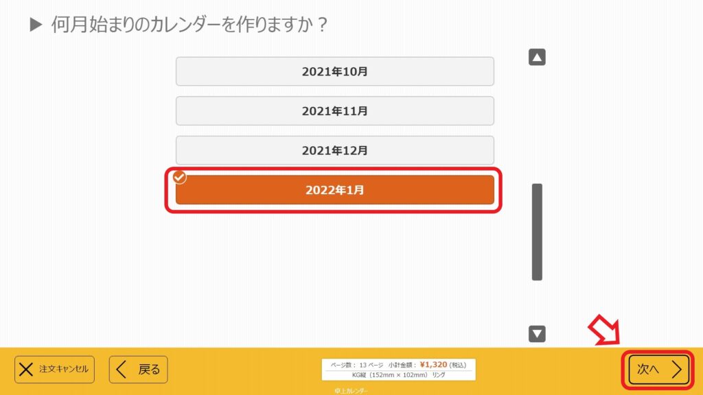 ④フォトカレンダーの始まり月を選ぶ