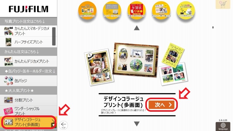 ① デザインコラージュプリントを選ぶ