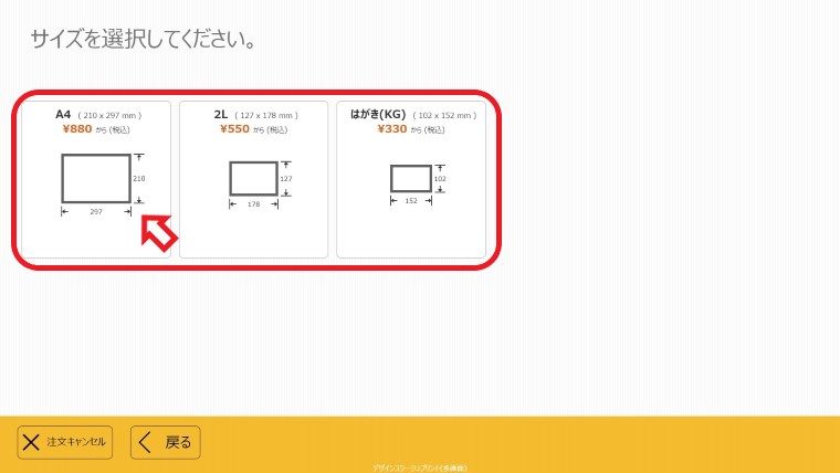 ① 作成したいサイズを選ぶ ※ここではA4サイズを選択