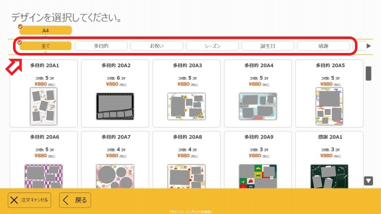 ②作成するデザインを選ぶ ※お好みのカテゴリーからデザインを選択する