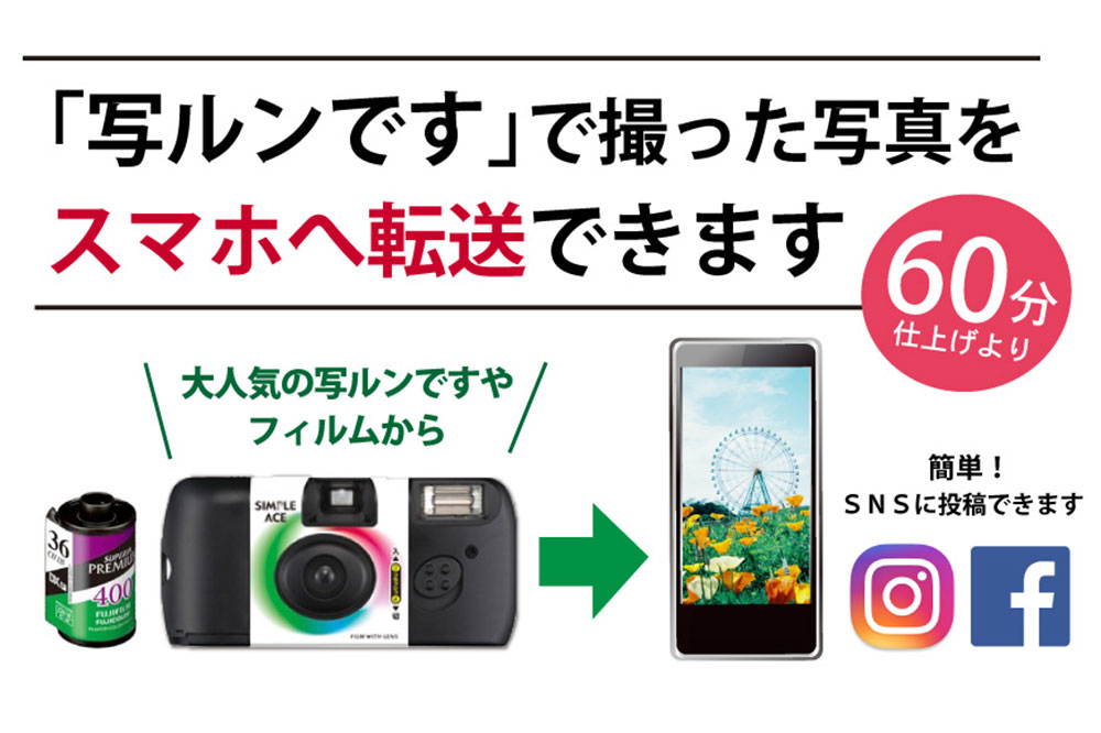 人気の“写ルンです”や“ネガフィルム”の現像できます!もちろんスマホ転送もOK!