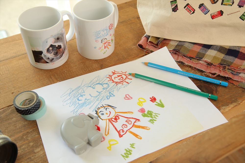子どもの描いたイラストからつくるマグカップ・缶バッジ