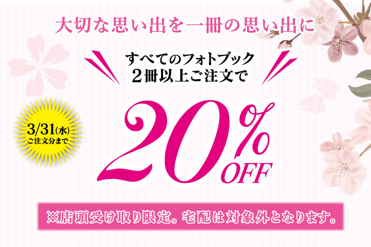 スマホの画像でオリジナル写真集がすぐ作れる。フォトブック2冊注文で20%OFFキャンペーン!